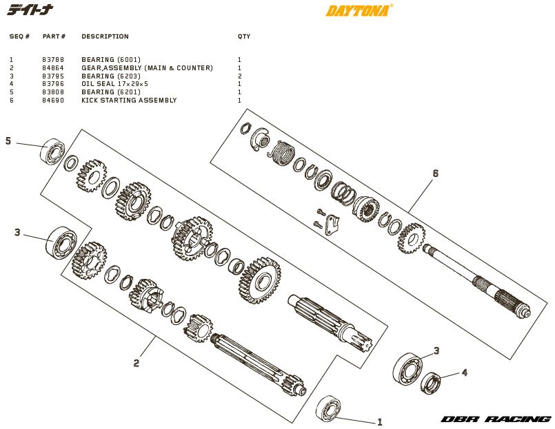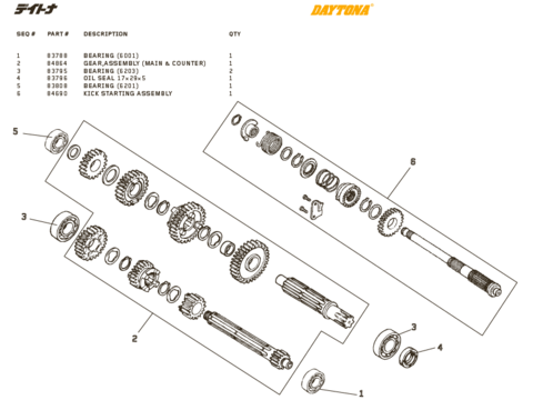 Gearbox parts for Daytona DT 150cc, T-Rex (2 VALVES).