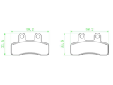 Brake pads front copper Brake pads front dual piston with copper coating. 77.3mm x 42.2mm x 7.2mm Fits: DBR: Prime Pro/Factory, Killer, Nitro, LXR Pitsterpro LX, LXR, X4, X5 YCF: 2006/8/9/10 Pitpro EXXO Snakepit Artno:5007 199 kr